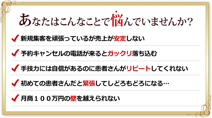 これからご紹介するお話は、日々の売上、施術に悩まれる先生にとって非常に重要な助け舟となるでしょう。