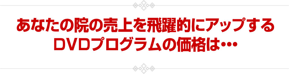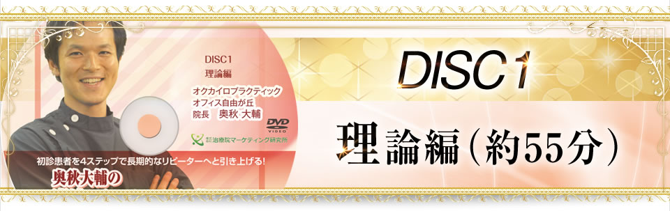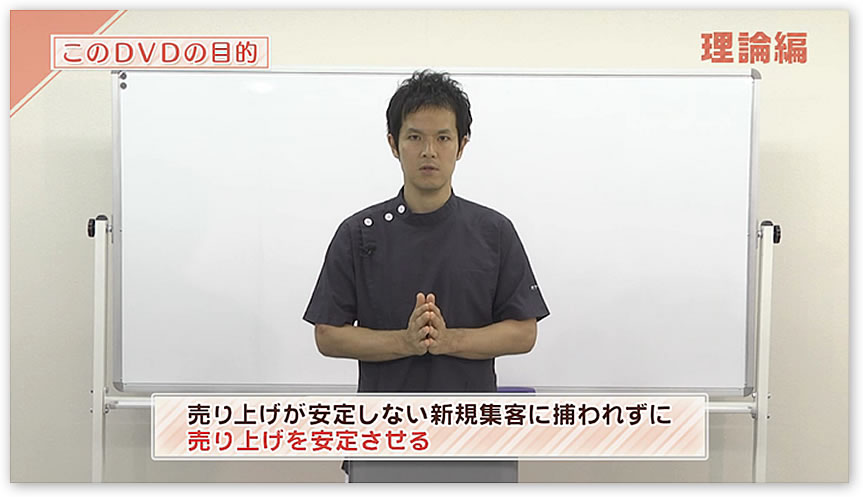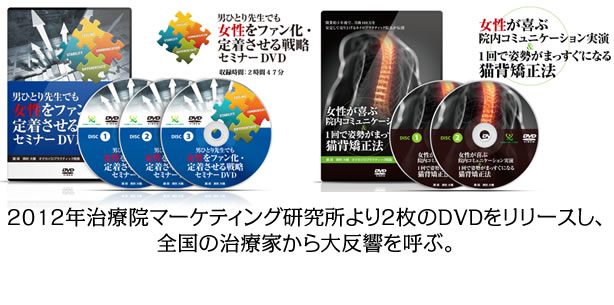今まで、この手のDVDを観て実践できないで終わっている先生、実践しても「自院では無理!」と思っていた先生、自分なりにリピート率を上げる方法を実践してきたがなかなか結果が出ない先生など、ありとあらゆる先生方に自院に取り入れて頂きたい内容になっています。あなたの治療院をより魅力的に見せることができるこのDVDのノウハウは、まさに『リピート率アップ成功の神髄』とも言えるべきものです。