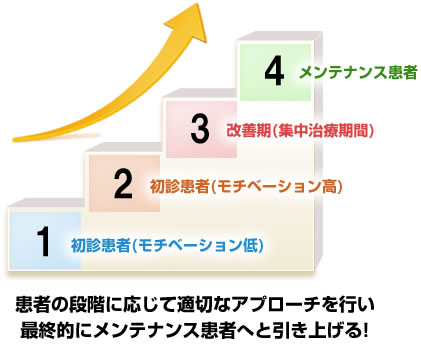 「今よりも先生のファン患者さんを増やし、長期的なメンテナンス患者を増やす」必要があります。