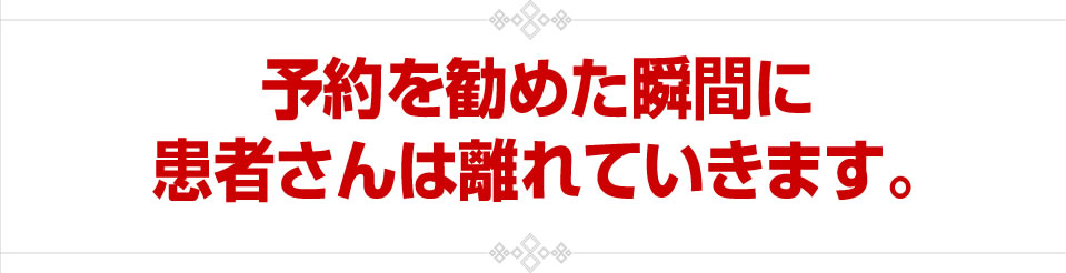 次回の予約や回数券を勧めるたびに患者さんは離れていくのです。