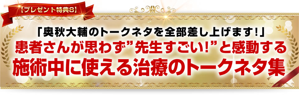 今回は特別特典として、奥秋先生が施術中に患者さんへ話している