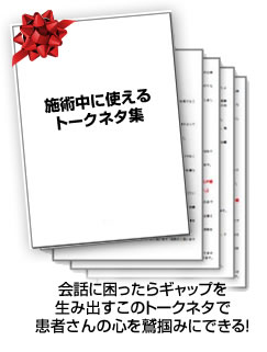 ここでご紹介しているトークのネタは、治療にまつわるウンチク集ですので、日々の施術にちょっと加えるだけで、患者さんの関心を惹きつけ、