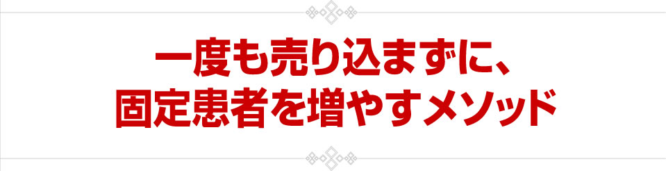 非常に単純で大事なポイントですが、意外に固定客を増やす方法を知らない先生が多いのも事実です。この固定患者を増やす仕組みを知っているからこそ、売上をアップし、安定させることができるといっても過言ではありません。